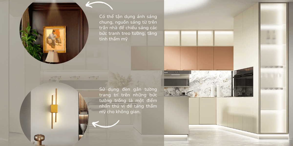 Mặt bằng mở khiến ranh giới giữa nhà bếp, phòng khách và phòng ăn bị lu mờ. Trong khi bạn muốn không gian có cảm giác gắn kết và muốn tạo ra sự khác biệt giữa từng khu vực. Một đến hai chiếc đèn bàn đủ cung cấp ánh sáng và tạo tách biệt trực quan giữa khu vực sinh hoạt và ăn uống trong sơ đồ mặt bằng mở. Những chiếc đèn bàn thủy tinh phối màu hợp lý còn tạo thêm nét sang trọng, tạo ra một rào cản thị giác giữa hai phòng nhưng không hề rời rạc với màu sắc trang trí chủ đạo của căn nhà.