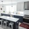 Tủ bếp gỗ sồi Mỹ kết hợp mặt đá trắng dễ dàng vệ sinh lau rửa, tăng tính thẩm mỹ.